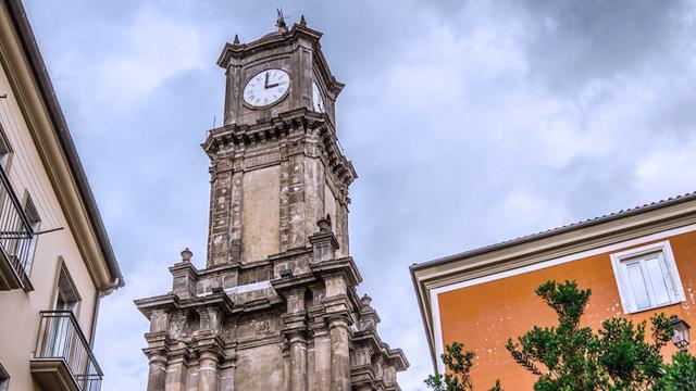 Come tutti i monumenti secolari, la Torre dell'Orologio ha vissuto le conseguenze dei vari terremoti successivi alla sua costruzione, nel XVII e XVIII secolo. Perciò, venne restaurata nel 1782, impiegando danaro pubblico, secondo quanto recita una lapide, dove si leggono i nomi del Sindaco, Pietro Rossi, e dell'Architetto, Luigi Maria de Conciliis Conciliis.