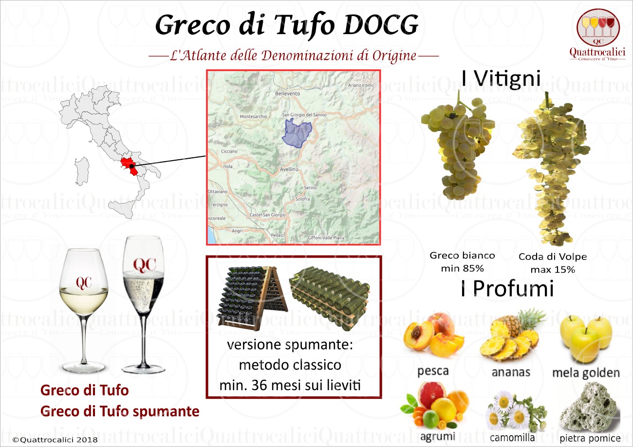 Probabilmente gli abitanti autoctoni già coltivavano la vite quando in zona giunsero i colonizzatori greci, ma la prima traccia storica della viticoltura risale al I secolo a.C. Si tratta di un affresco di Pompei dove si legge “vino Greco”. La sua diffusione parte dalle pendici del Vesuvio per arrivare nell'avellinese dove prende appunto l'appellativo Greco di Tufo. Ci sono indizi che, precedentemente, si sia chiamato Aminea Gemina (Gemina perché produceva spesso grappoli doppi): Aristotele infa leggi di più
