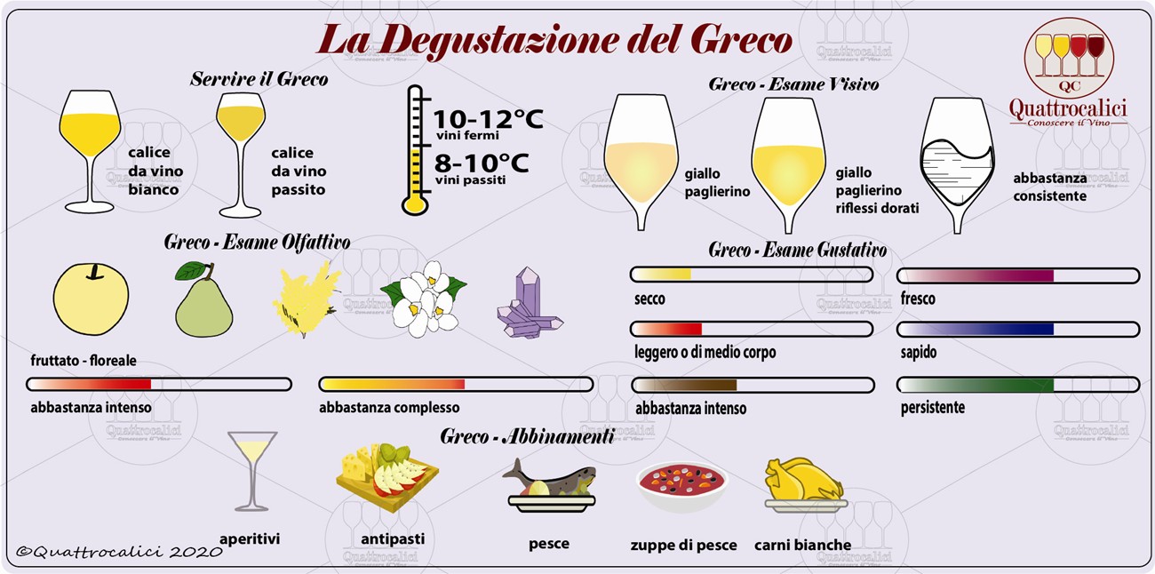 si comincia nel 1909 nell'Ampelographie di Viala e Vermol “....Greco Bianco di Tufo: vitigno delle regioni meridionali d'Italia e soprattutto della provincia di Avellino, molto apprezzato e molto coltivato per la superiore qualità del suo vino, di un colore giallo-dorato; è probabilmente l'Aminea Gemella degli antichi autori; è pure il vitigno che è stato coltivato, nel I secolo a.C. sulle falde del Vesuvio.”;
