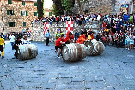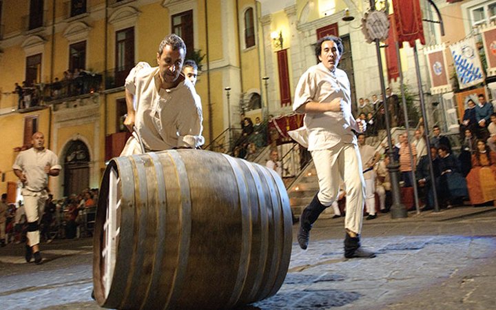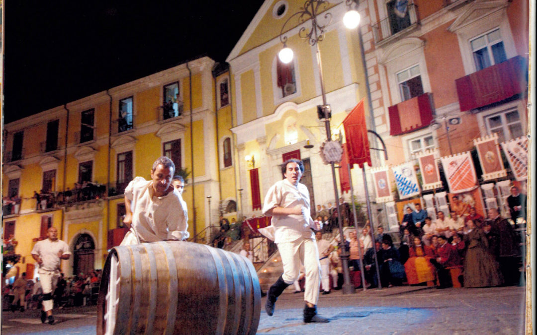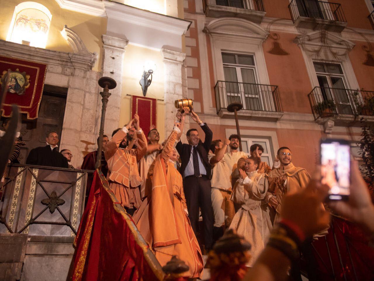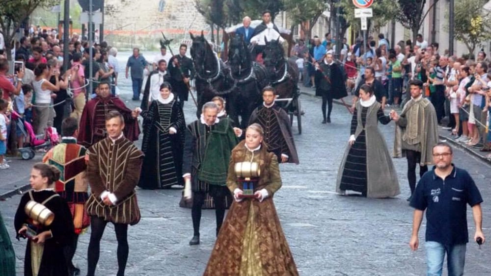 Alle ore 19 del 12 agosto, per le strade del centro storico ha inizio la sfilata della "Corte", abbigliata con sfarzosi abiti medievali, cuciti a mano seguendo il modello delle migliori sartorie teatrali toscane. Oltre alla Corte, alla sfilata prendono parte la carrozza del "Principe Caracciolo" e, a seguire, il "Carro con il tesoro", simbolo del Monte di pietà che anticamente forniva la dote alle ragazze meno abbienti della città. Chiudono il corteo cinquanta sbandieratori e cavalieri toscani o leggi di più