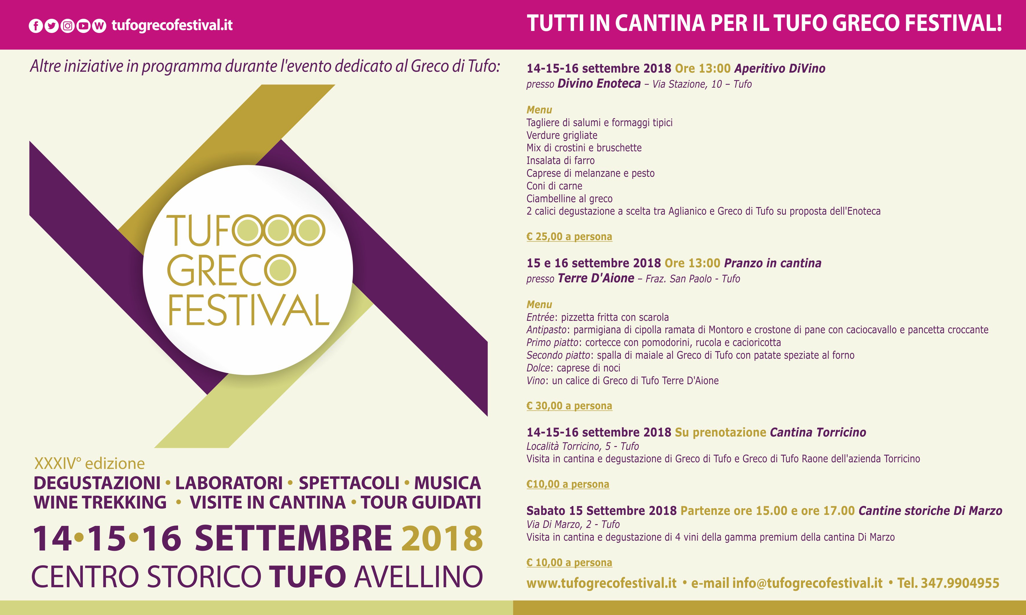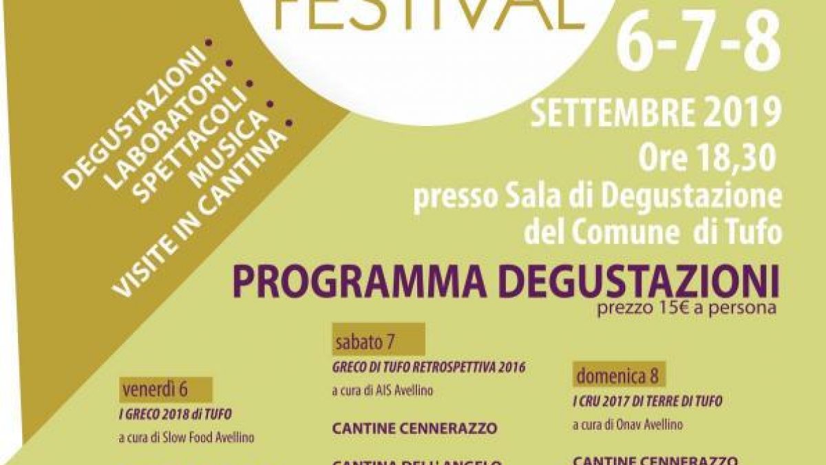 Evento che si svolge solitamente nella prima settimana di settembre, con degustazioni, gastronomia, musica, wine tour e un protagonista assoluto: il Greco di Tufo DOCG